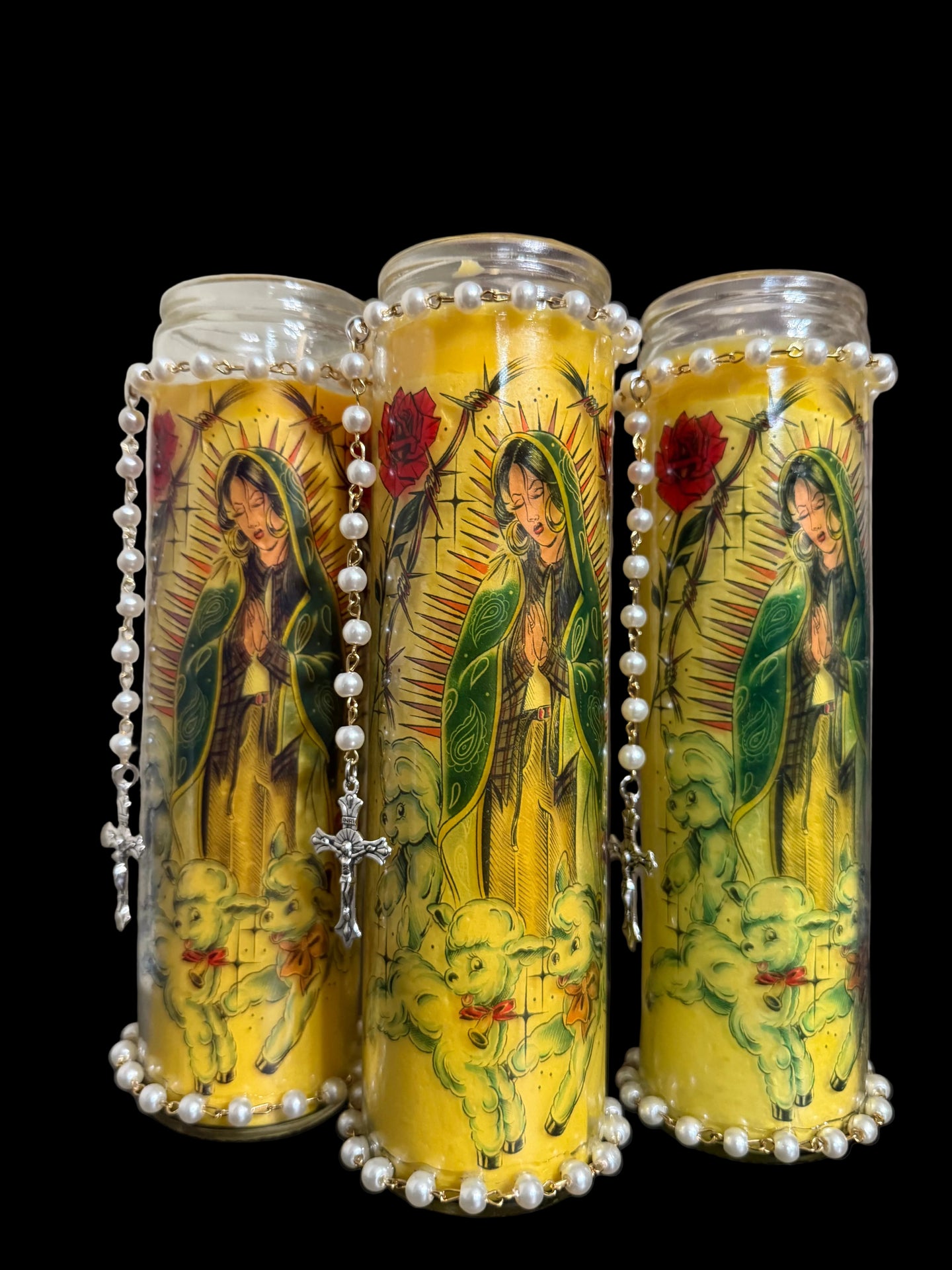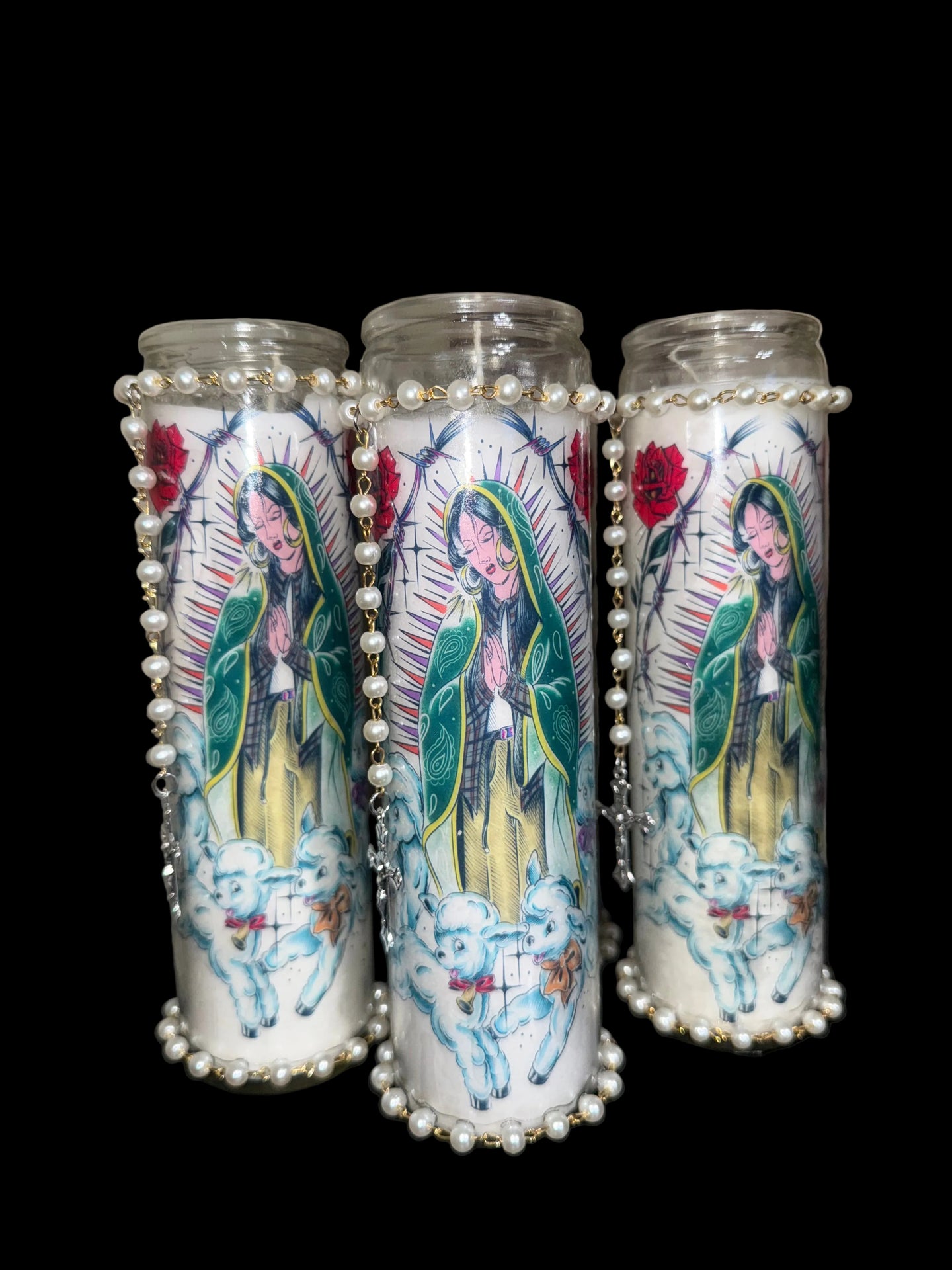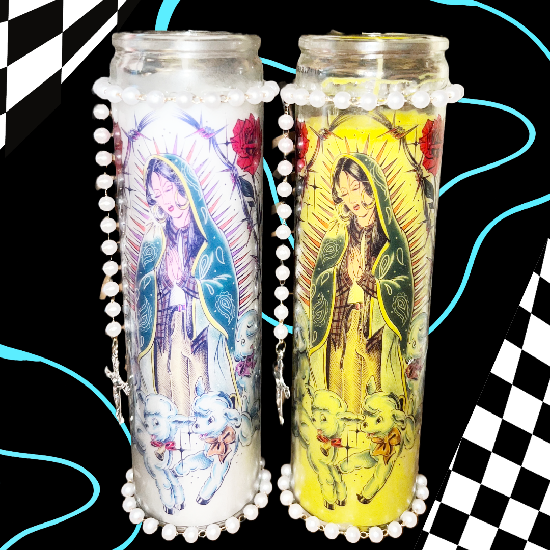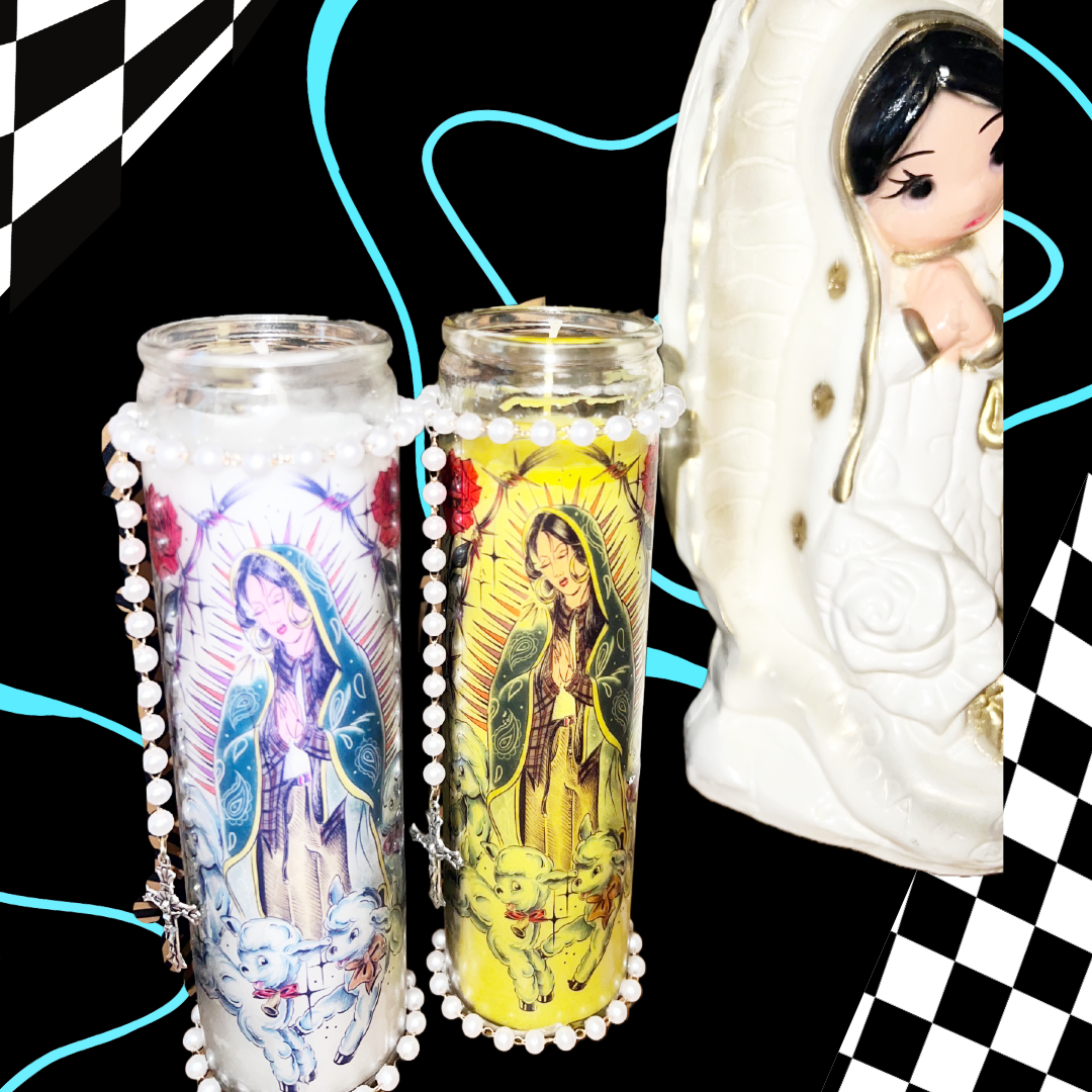 Bringing back the classic Virgencita Candles just in time for the holiday season! This beautiful chola with her little lambs was a special commission by the talented @elpinchehans