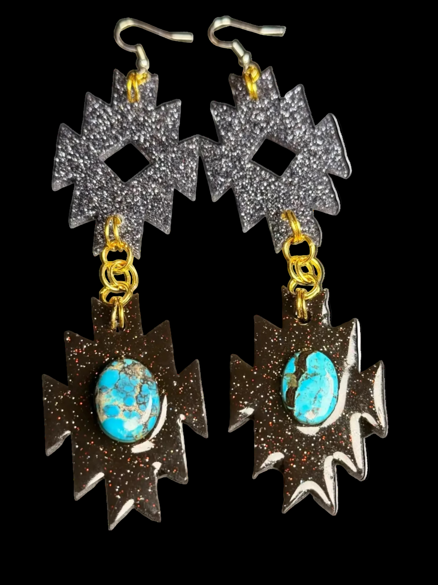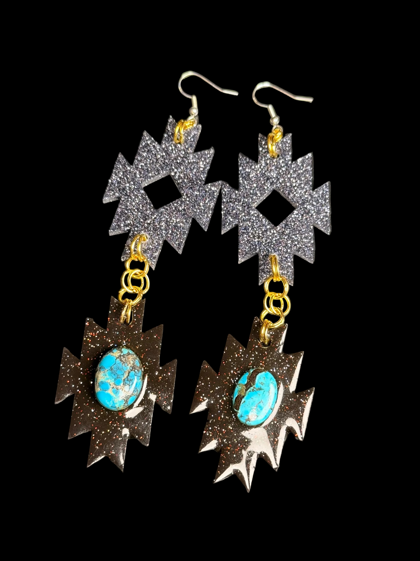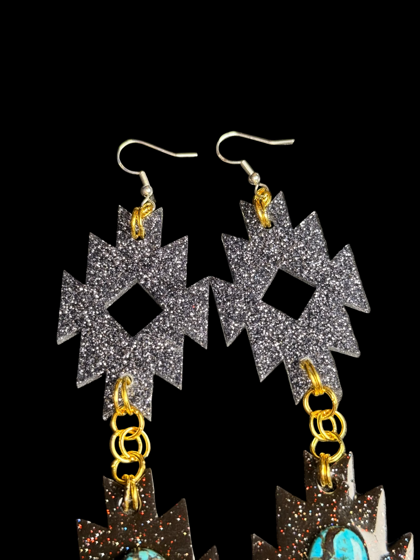 Resin, Glitter and turquoise stone.