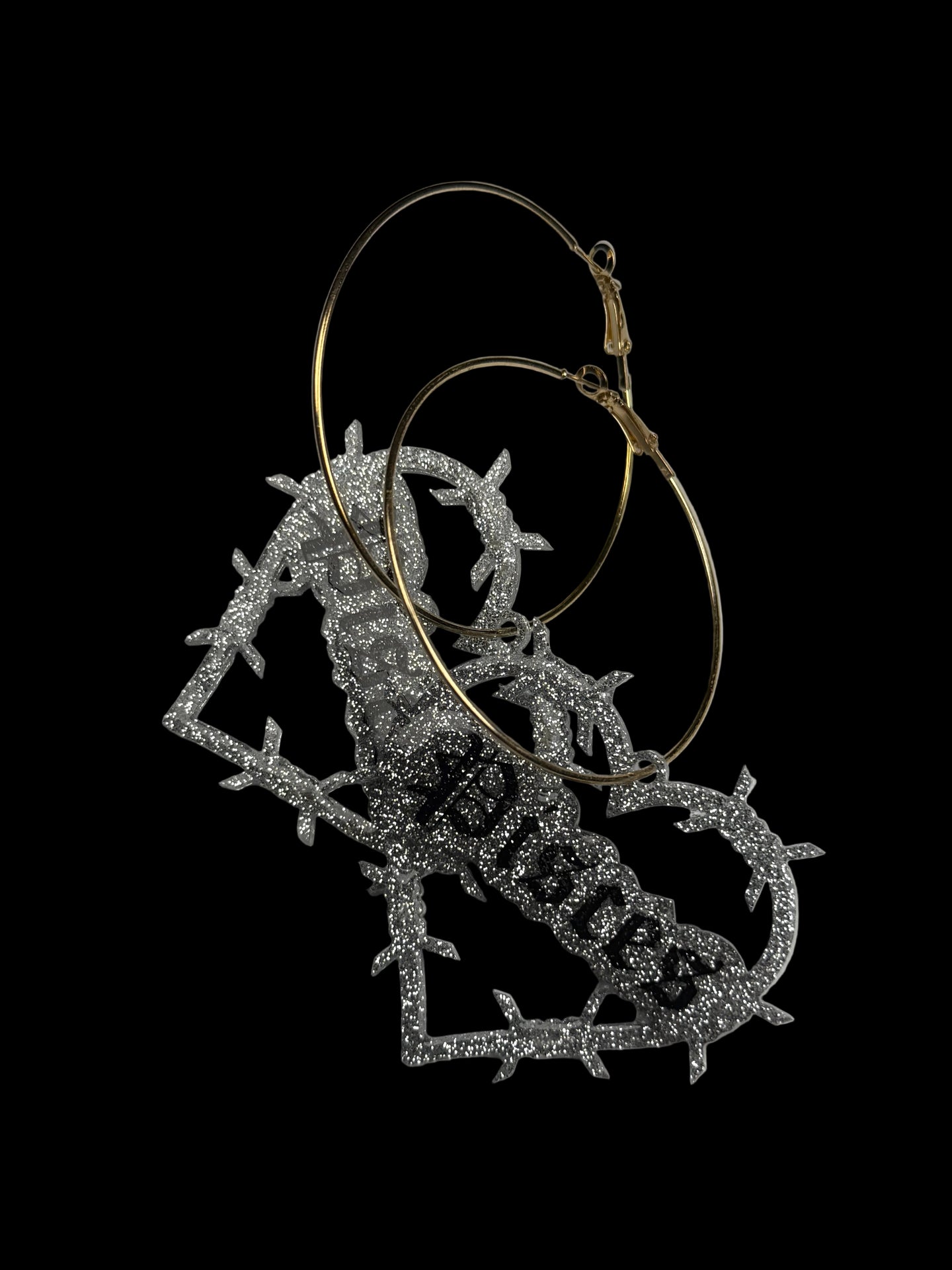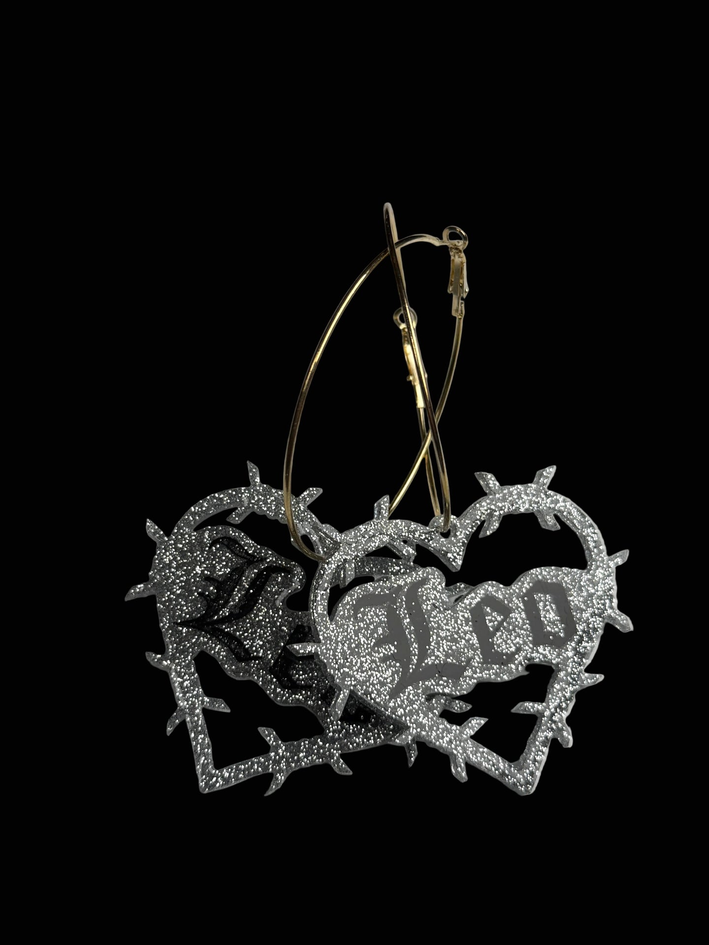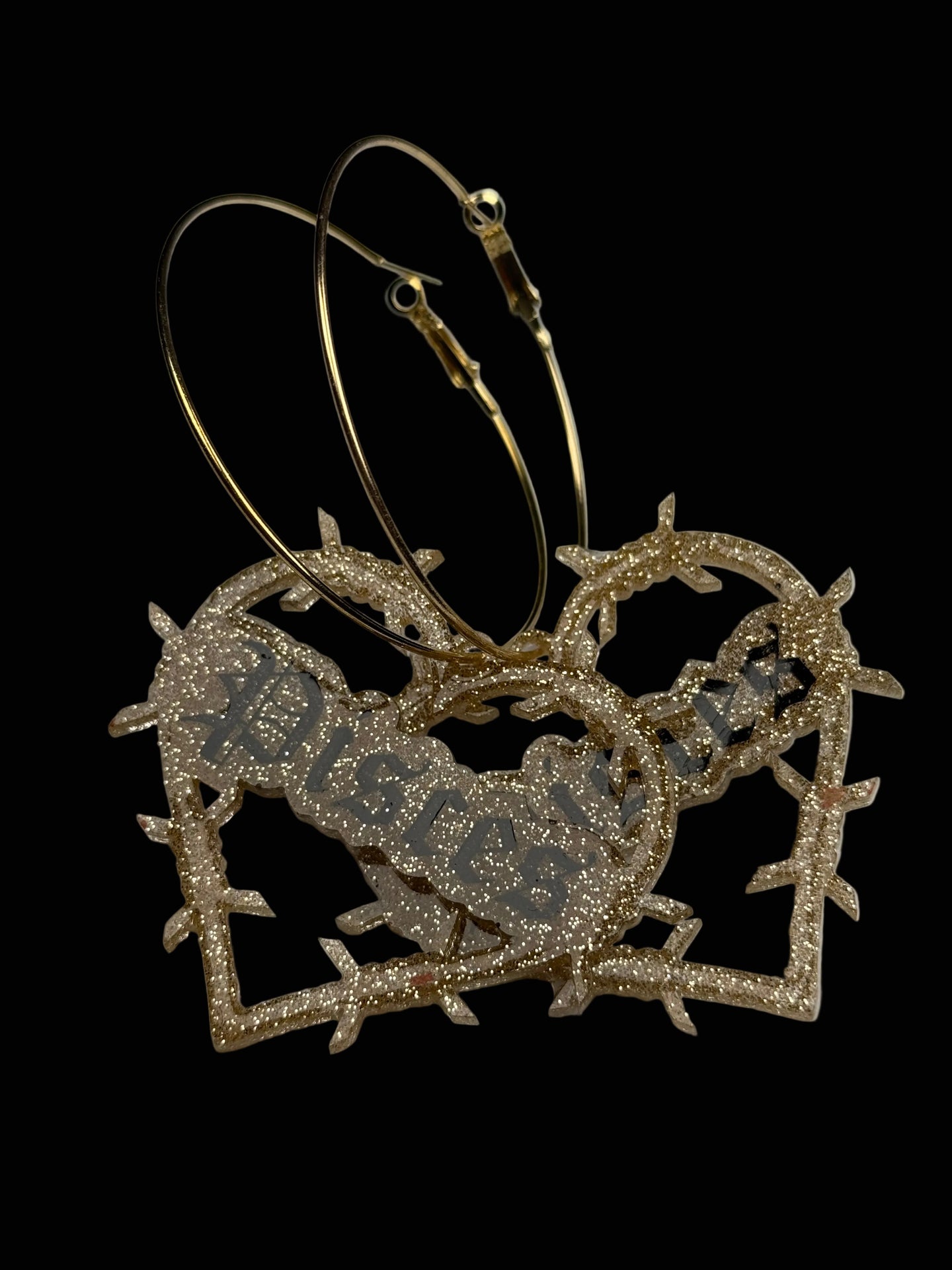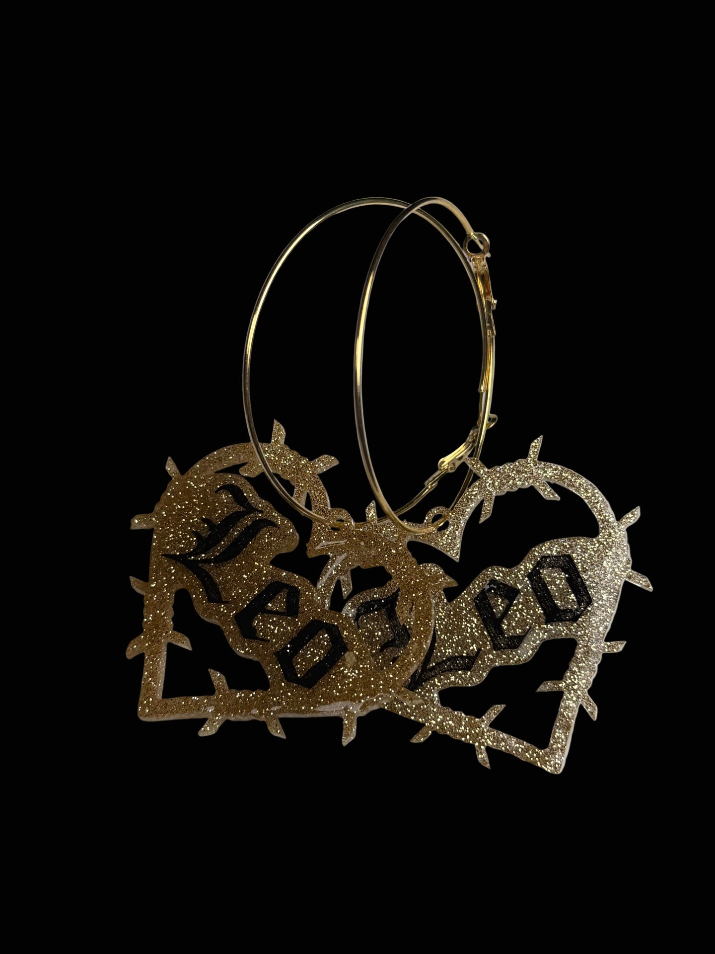 Super cute glitter resin in silver or gold on hoops. Hand painted. Domed and sealed with a clear coat.