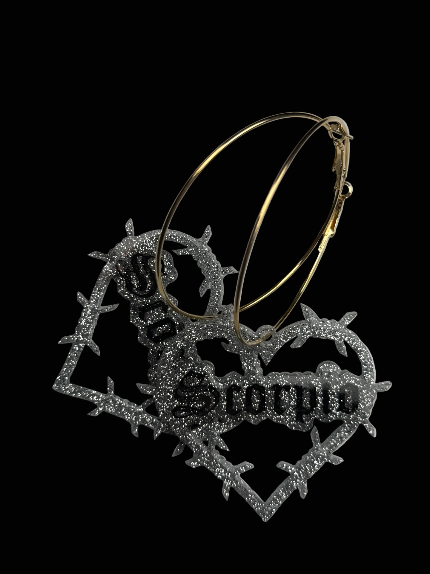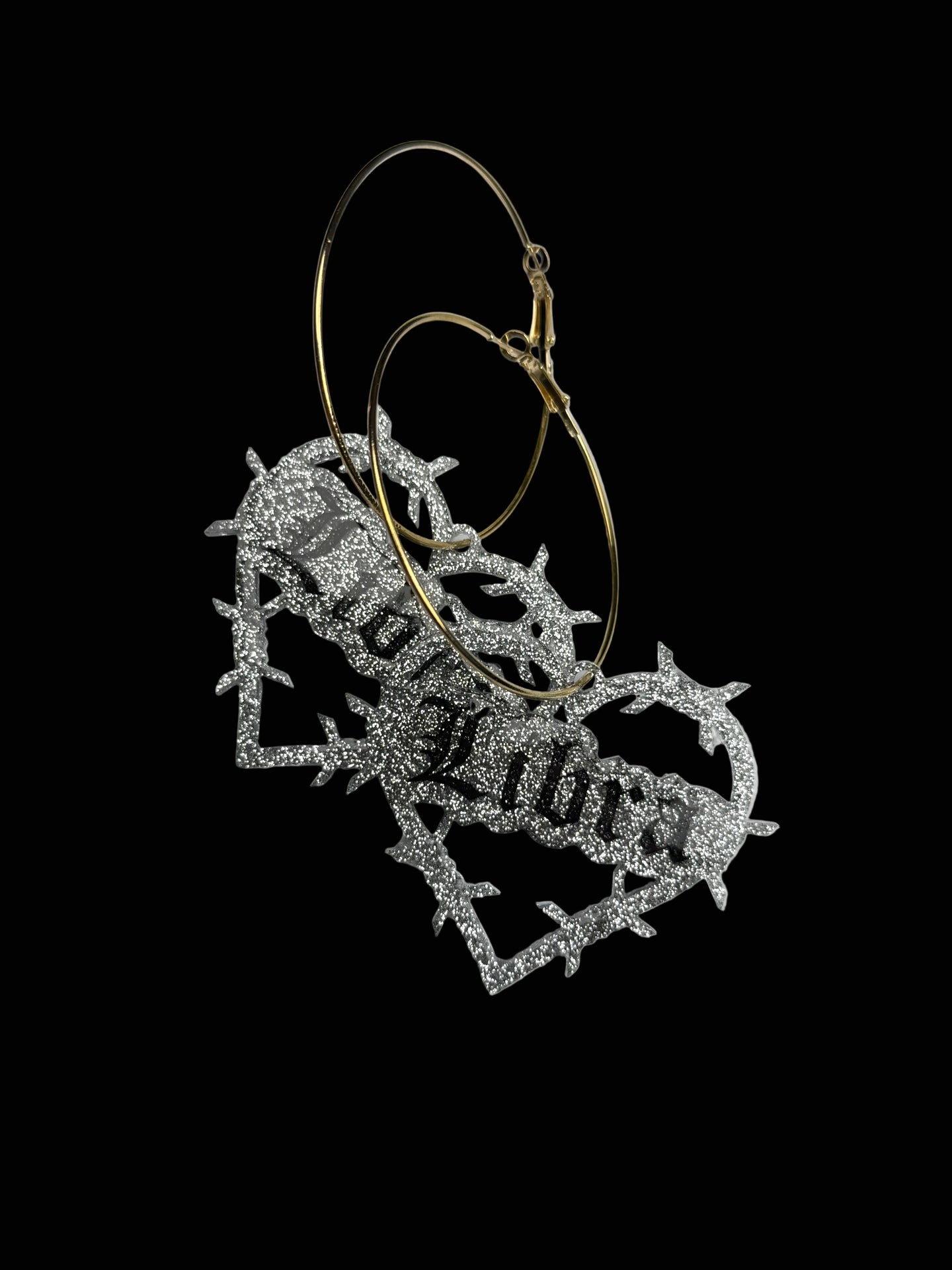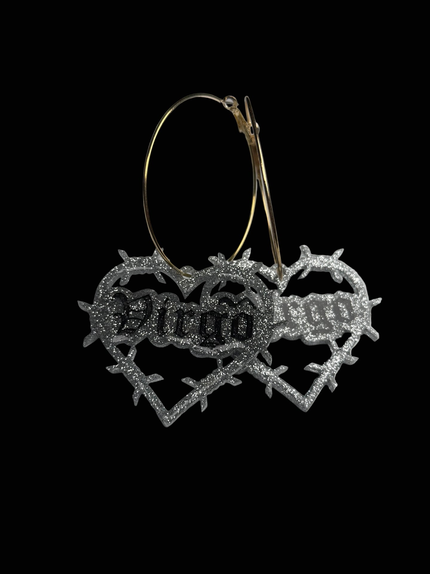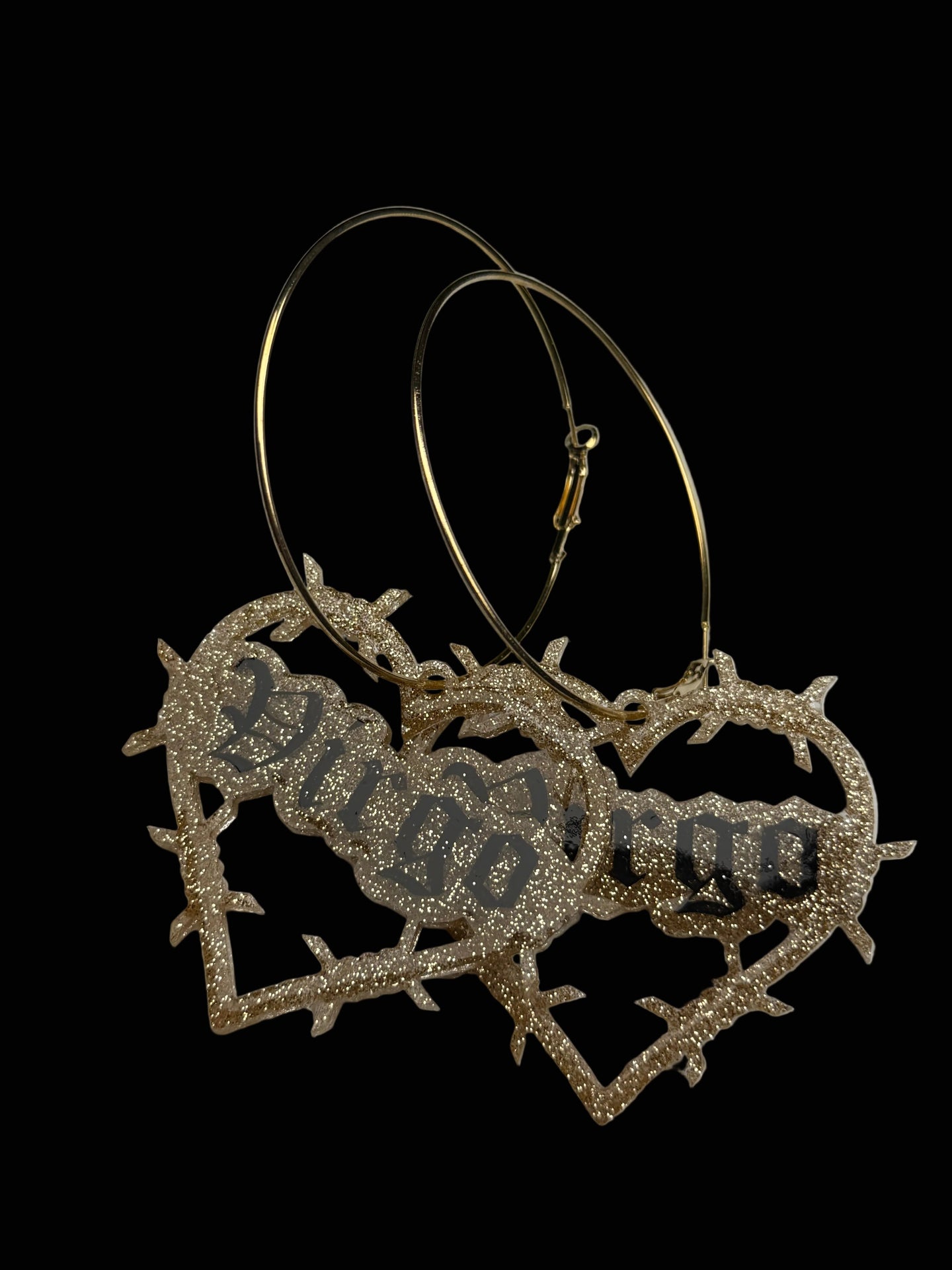 Super cute glitter resin in silver or gold on hoops. Hand painted. Domed and sealed with a clear coat.