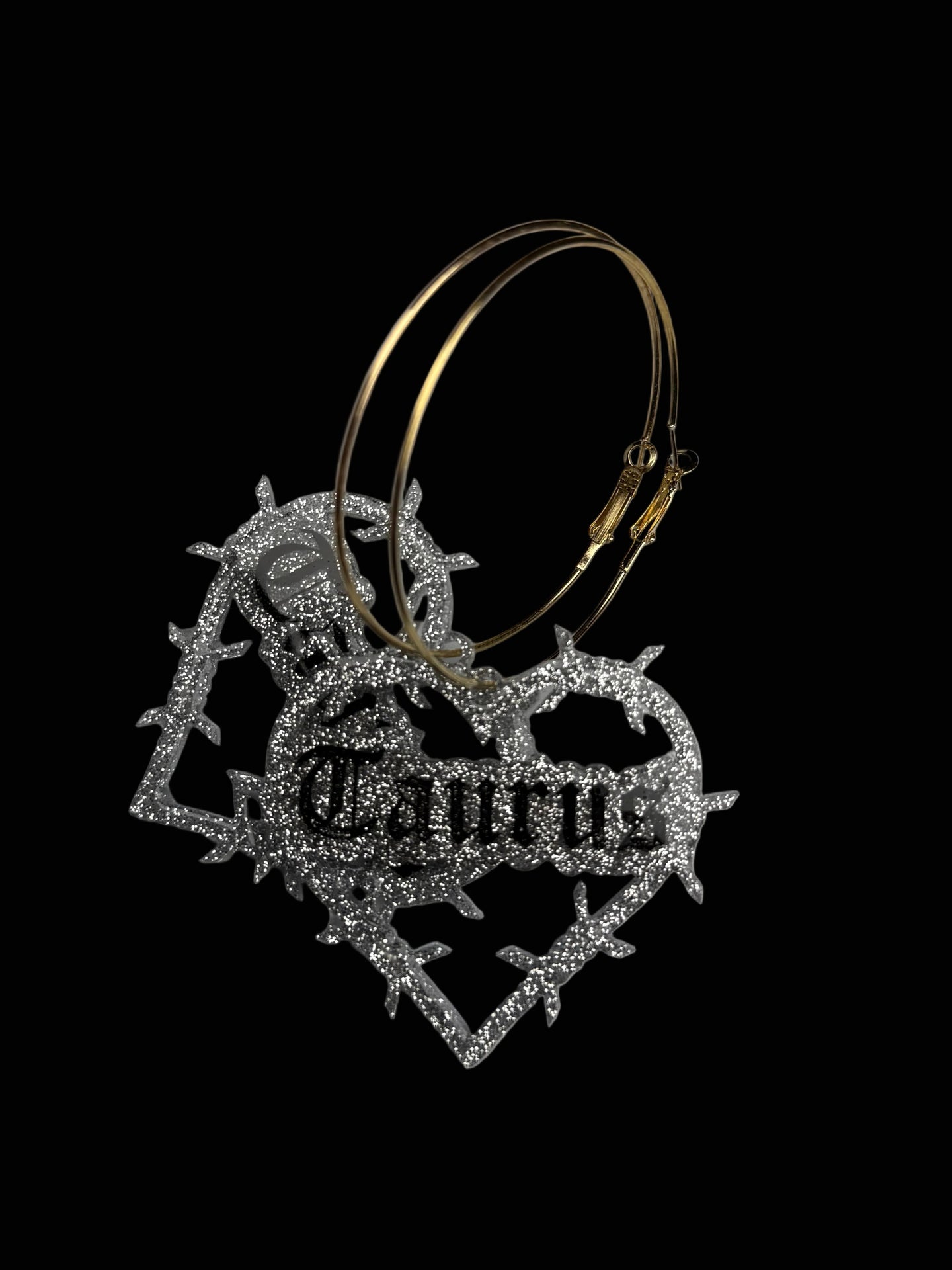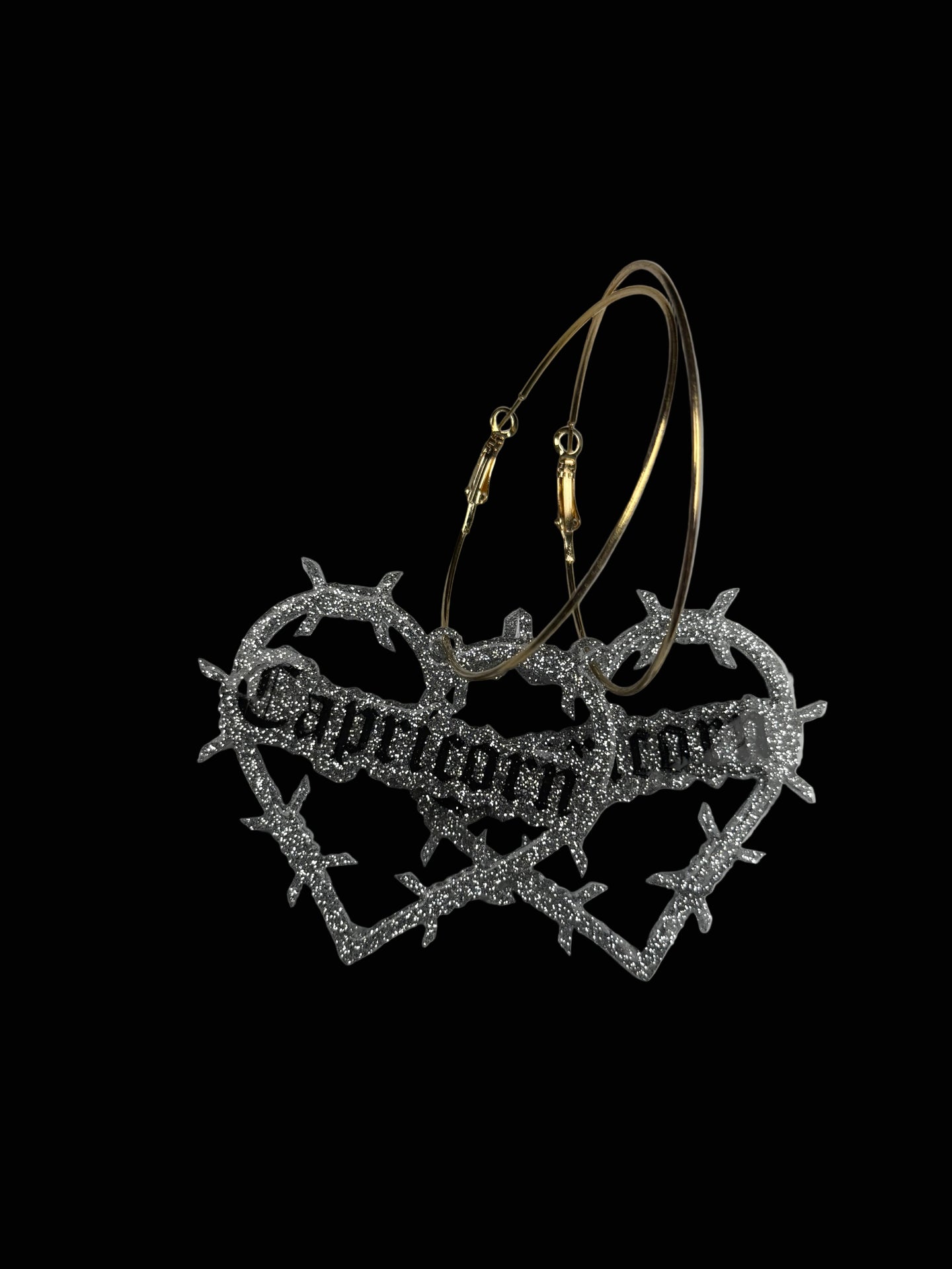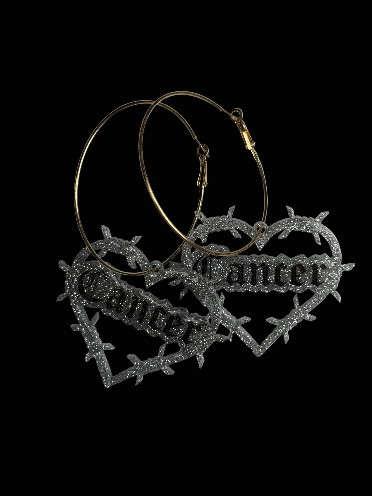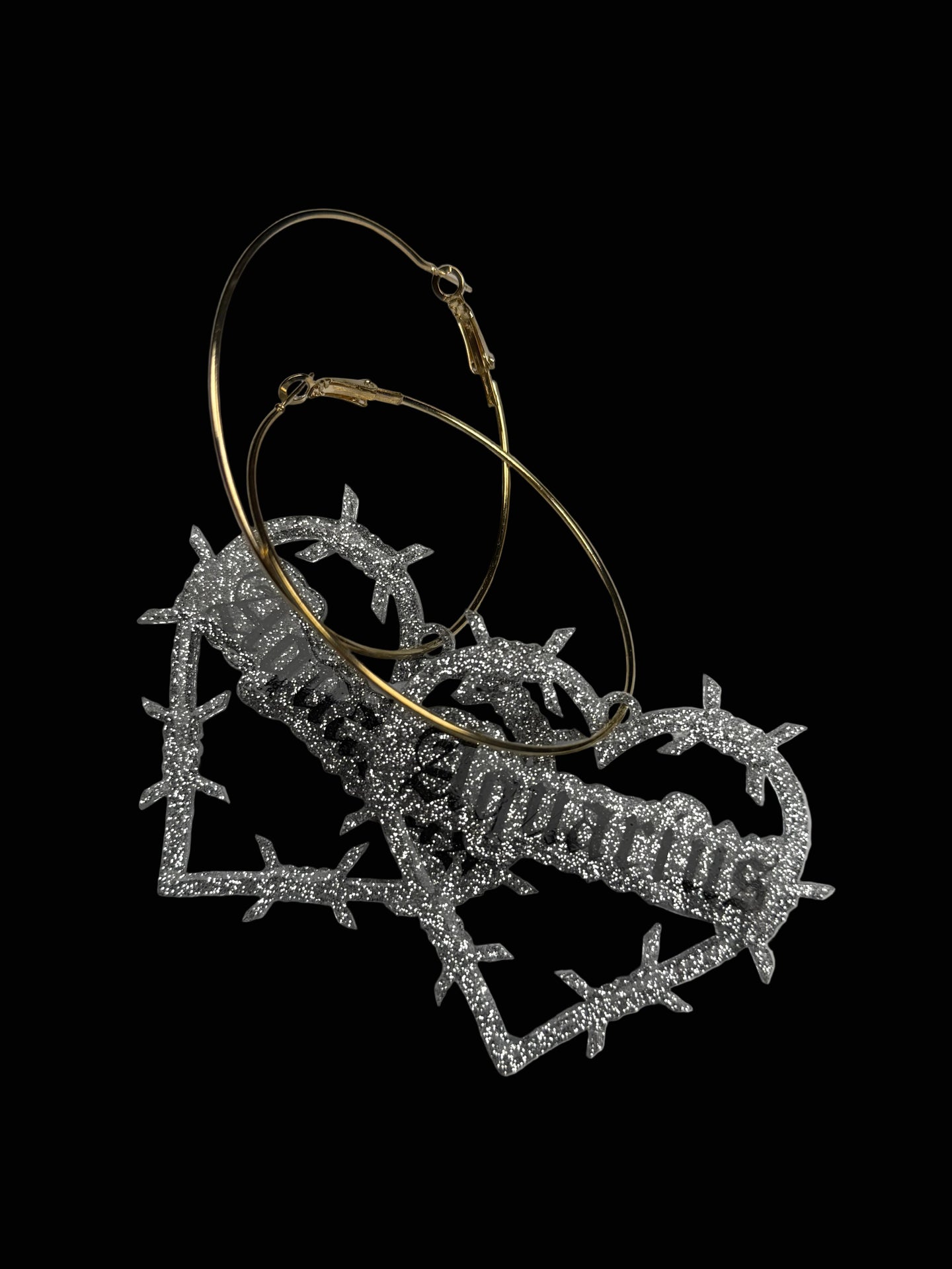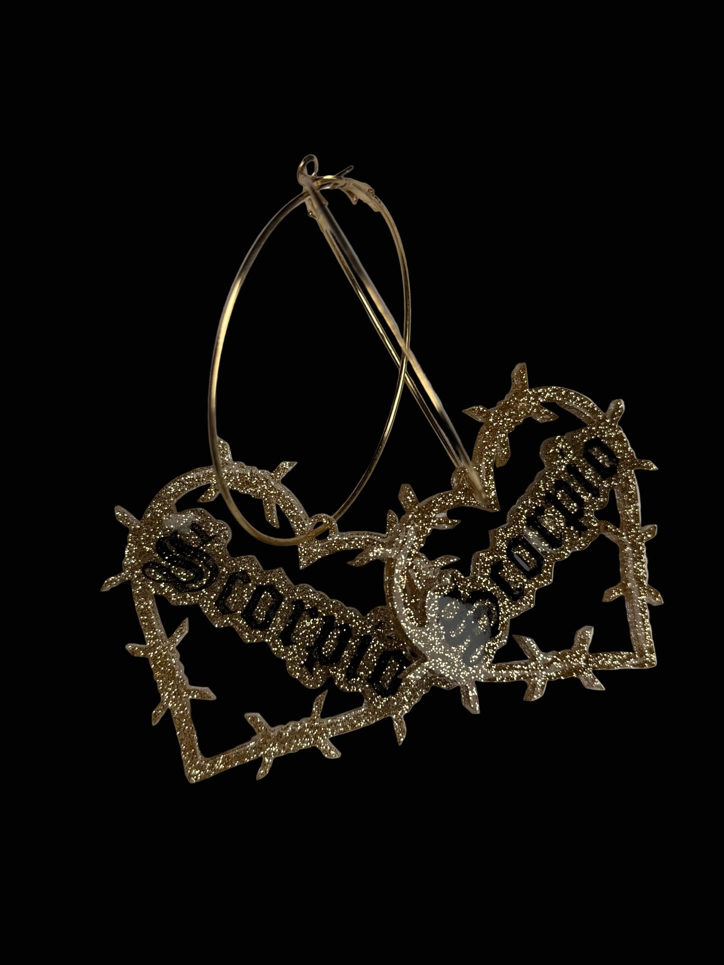 Super cute glitter resin in silver or gold on hoops. Hand painted. Domed and sealed with a clear coat.