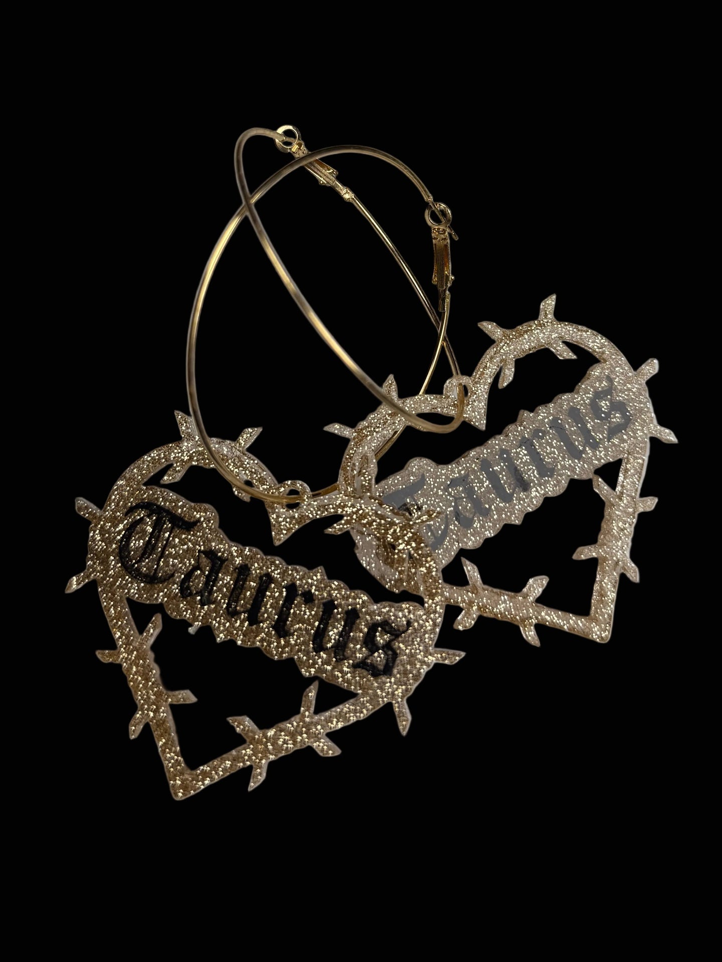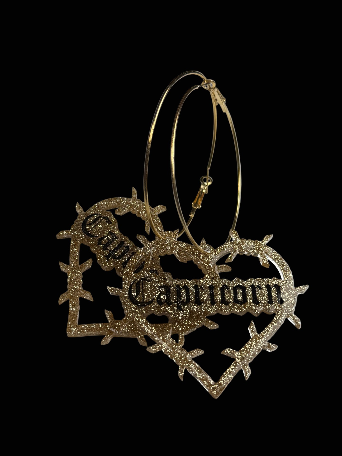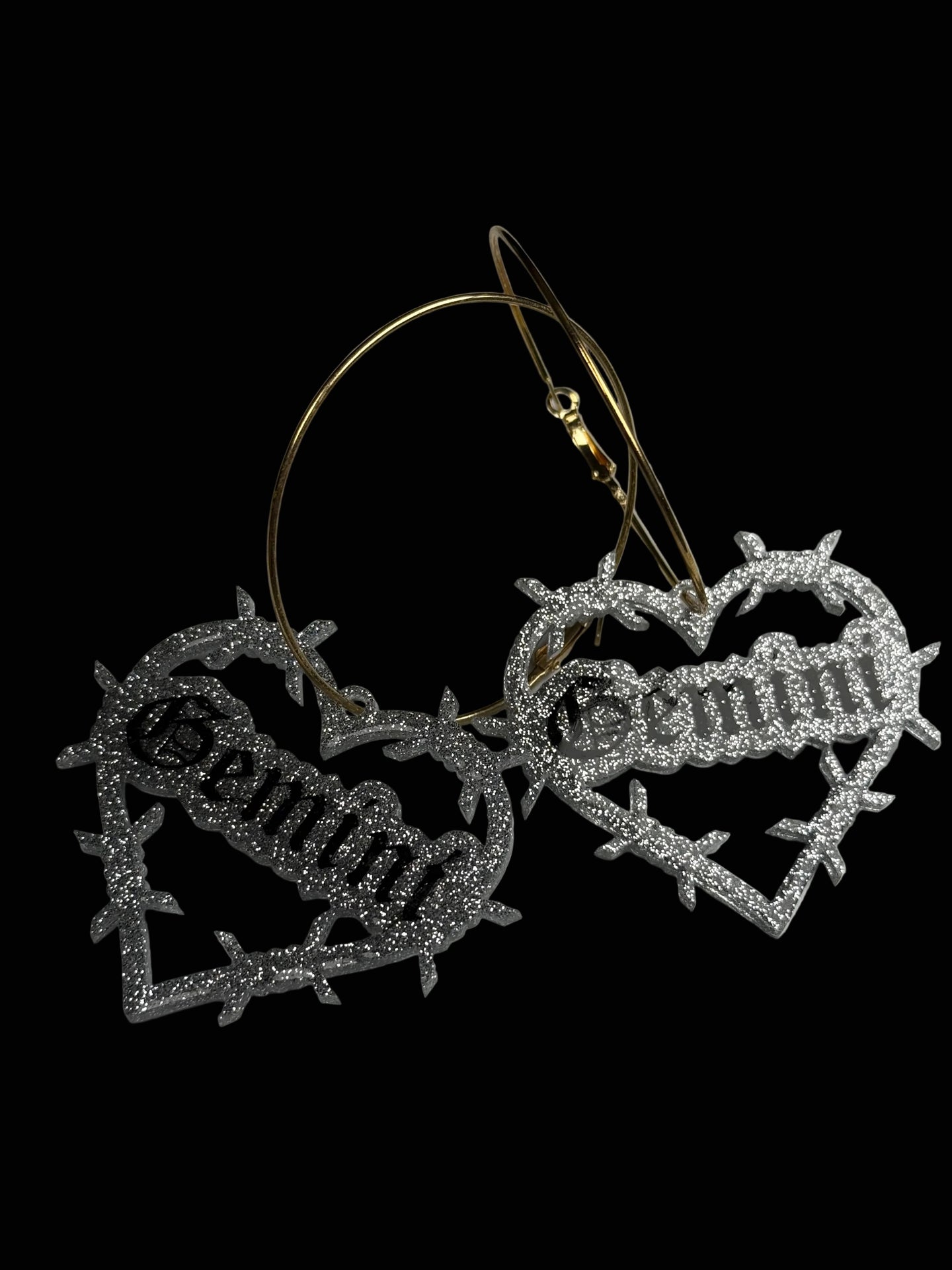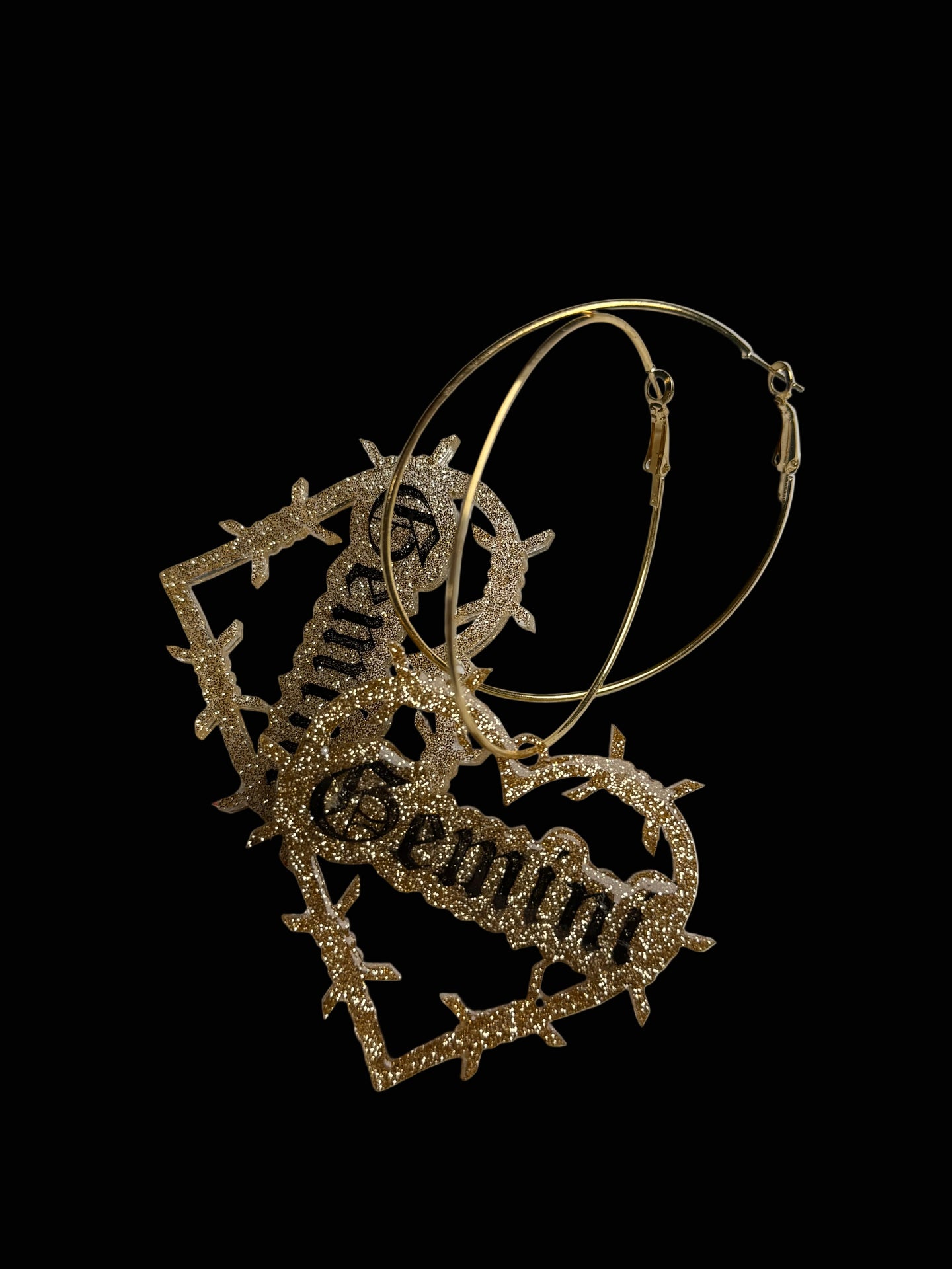Super cute glitter resin in silver or gold on hoops. Hand painted. Domed and sealed with a clear coat.